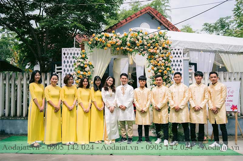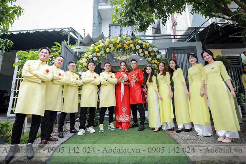 Trong ngày cưới hỏi, ngoài việc khách mời chú ý đến trang phục cô dâu – chú rể thì trang phục của đội hình bưng quả cả nam và nữ cũng được nhiều người để ý. Thông thường số lượng của đội hình này mỗi bên từ bốn trở lên nên đây sẽ là đội hình điểm nhấn cho ngày cưới của bạn. Những kiểu áo dài bưng quả vẫn luôn được cập nhật liên tục về mẫu mã, thiết kế, màu sắc vô cùng phong phú đa dạng để phù hợp với nhu cầu thuê áo dài bưng quả của cô dâu - chú rể.