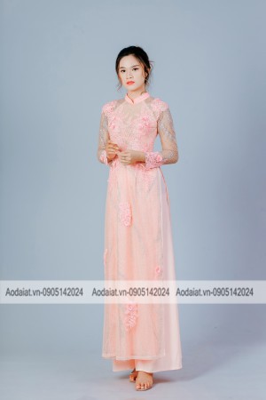 Mẫu áo dài đám hỏi ADH-AT07 chất liệu ren sang trọng và nữ tính luôn là sự lựa chọn hàng đầu của các cô dâu. Đặc biệt những chiếc áo dài cưới ren màu cam đào cũng luôn được các cô dâu yêu thích. Thiết kế áo dài ren mang phong cách cổ điển và truyền thống với điểm nhấn là các chi tiết đính đá nổi cầu kỳ và nổi bật trên thân áo.