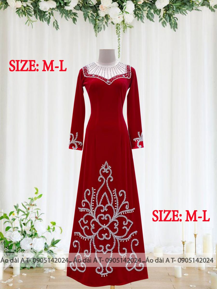 Áo dài nhung màu đỏ đô kết hạt cao cấp