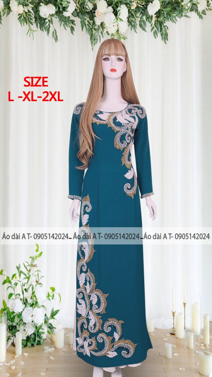 Áo dài bà sui màu xanh noa chât liệu lụa mỹ kết hoa bằng hạt phalee cao cấp